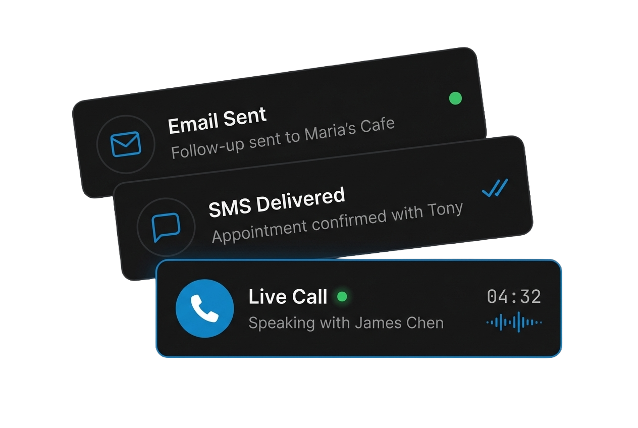 Contact leads via email, text, and calls, delivering the perfect pitch every time.